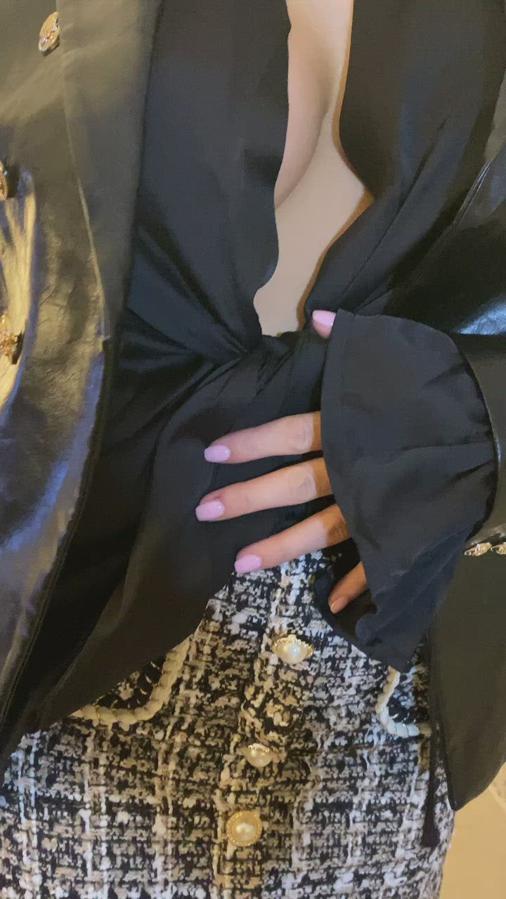 The all purpose tweed black & ivory high waisted mini skirt assembled with pearl buttons and pockets. There’s a little to no stretch it is recommend to go one size up.